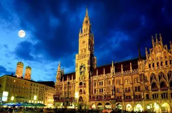帶你領(lǐng)略巴伐利亞的豪邁風(fēng)情,從市中心的瑪麗恩廣場(chǎng)開始慕尼黑之游,裝飾富麗堂皇的新市政廳位于瑪麗亞廣場(chǎng)北側(cè),19世紀(jì)末建造的巍峨挺拔的棕黑色建筑,上面像撒了一層白霜。市政廳鐘樓上裝置有全德國最大的木偶報(bào)時(shí)鐘,每天有多少游人翹首仰望這迷人的表演,聆聽那清脆響亮的音樂鐘聲,一睹古代人物的豐采,驚嘆德國藝術(shù)之高超。