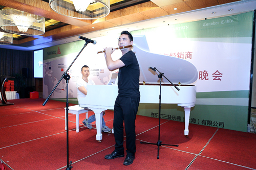 晚會(huì)的開始把當(dāng)天的活動(dòng)帶入了高潮,我們經(jīng)銷商中人才濟(jì)濟(jì),鋼琴獨(dú)奏、美聲、吉他、笛子各種樂器玩轉(zhuǎn),紛紛自告奮勇登臺(tái)表演,鋼琴表演者修長(zhǎng)而優(yōu)雅地雙手輕輕撫過琴弦,音色猶如一汪清水,清清泠泠...似夏夜湖面上的一陣清風(fēng)..引人心中松弛而清新…… 二胡聲飛揚(yáng)灑脫;笛聲悠遠(yuǎn)流長(zhǎng);歌聲美妙動(dòng)聽;吉他聲一陣一陣引人入勝,給所有經(jīng)銷商帶來了一場(chǎng)聽覺盛宴。